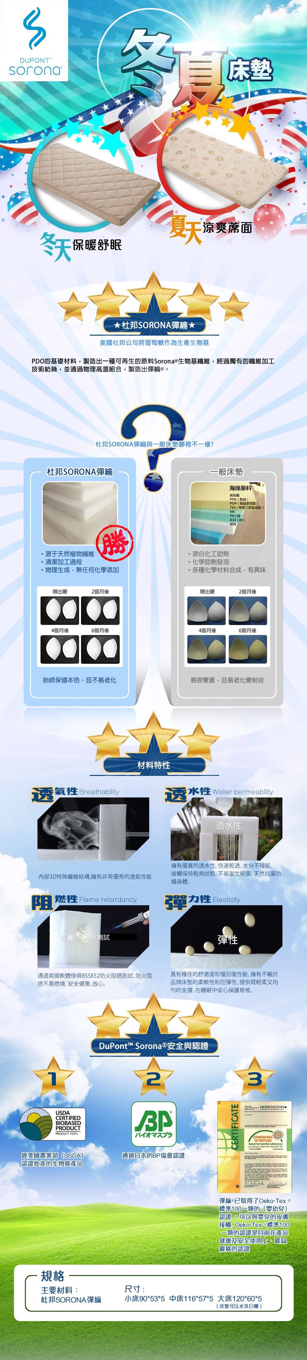是否有附床墊:AZZURRA冬夏床墊(杜邦Sorona材質)