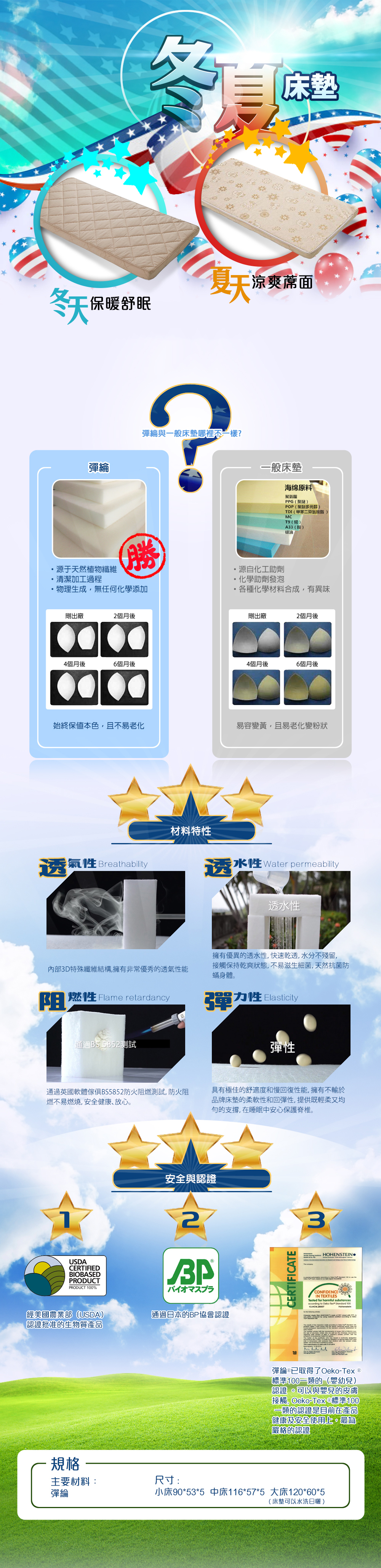 AZZURRA冬夏床墊(杜邦SORONA材質)-中床
