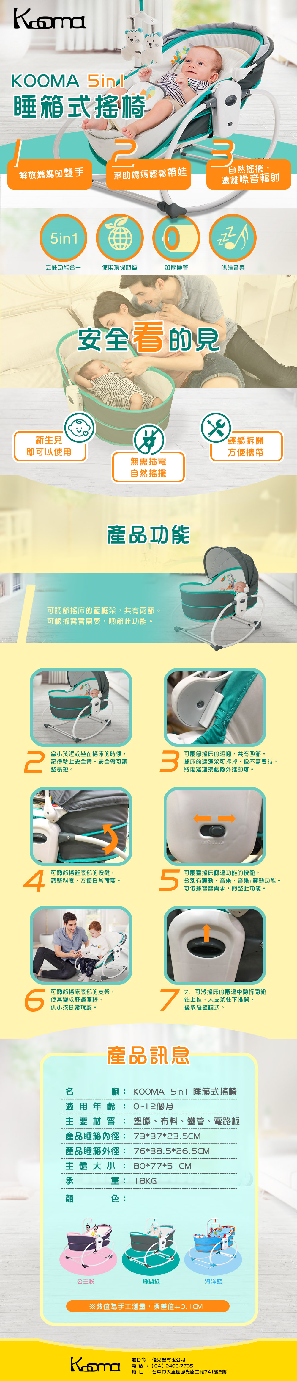 KOOMA 5in1 睡箱式搖椅-公主粉