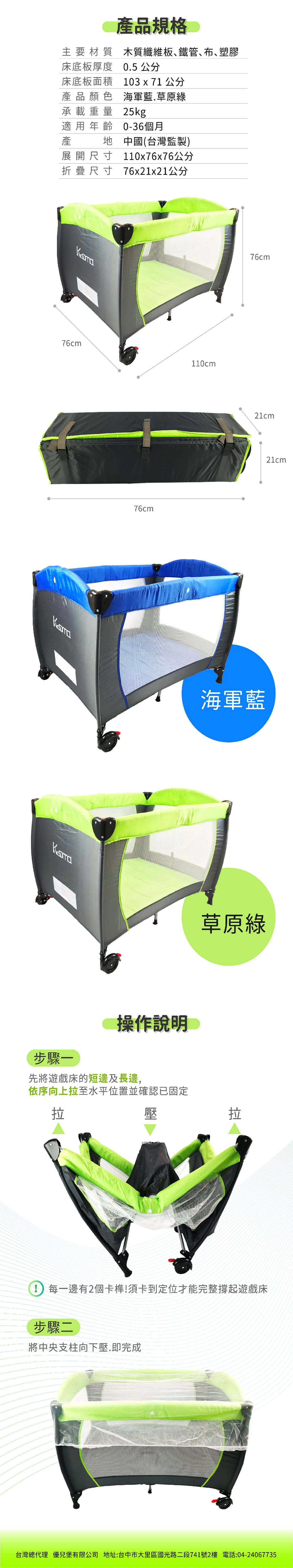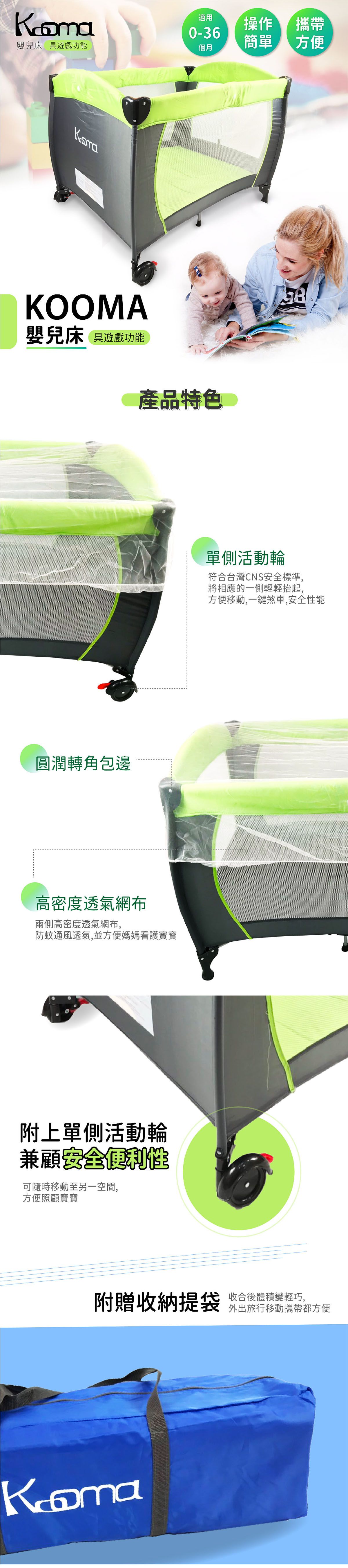 Kooma折疊嬰兒床(具備遊戲功能-海軍藍