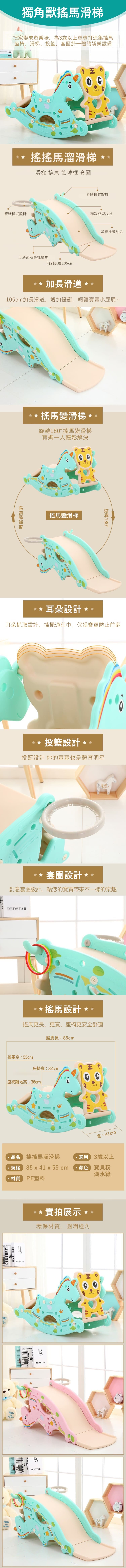 Kooma獨角獸搖馬溜滑梯-寶貝粉